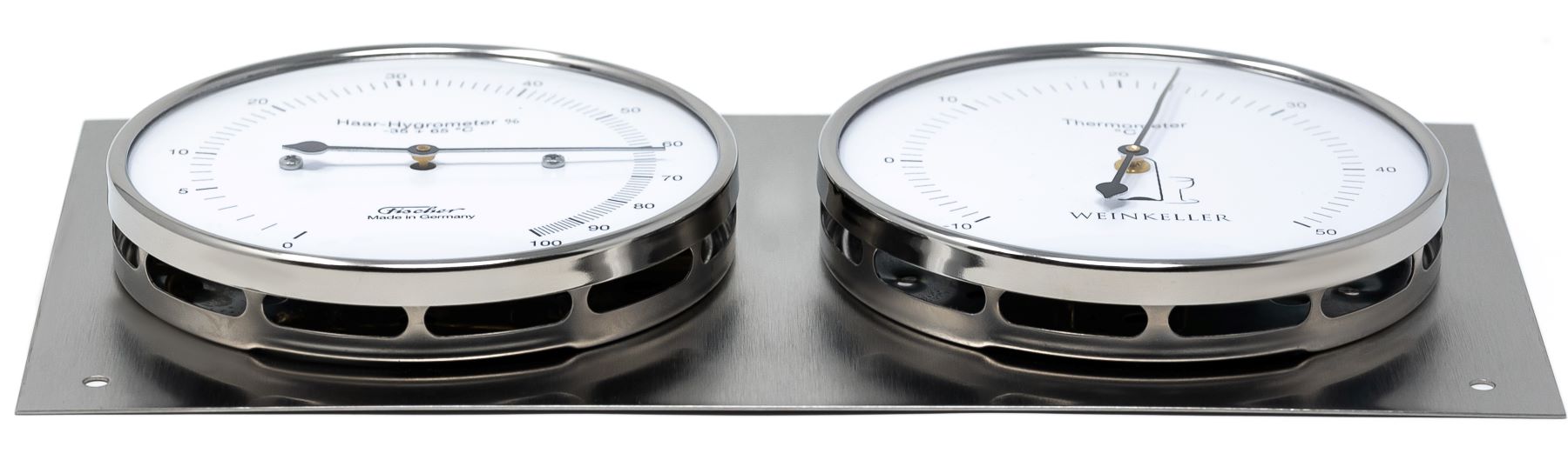 This precision instrument combines a real hair hygrometer with a bimetal thermometer, giving you accurate humidity and temperature readings at a glance. Handmade in Germany and finished in polished stainless steel, it’s both a functional tool and a stylish addition to your cellar.