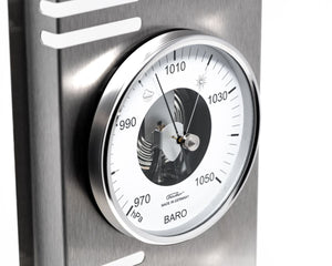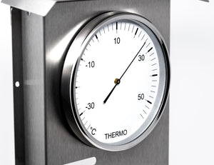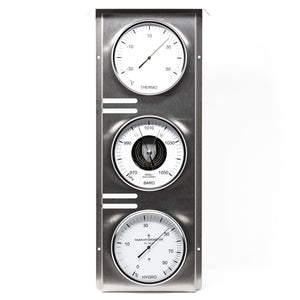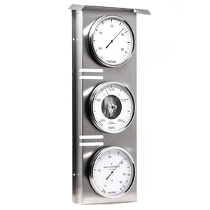 Designed for indoor and outdoor use, this all-in-one instrument measures atmospheric pressure, humidity, and temperature in stainless steel.