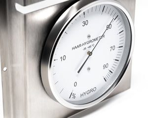 Barometer, hair hygrometer, and thermometer for complete environmental monitoring -