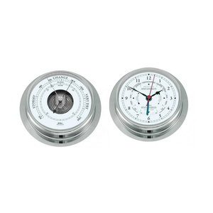 Large Polished Chrome 200mm Barometer & Tide Clock Combo