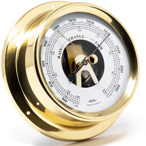 This brass barometer is a precision instrument that accurately measures atmospheric pressure. It is a dependable indicator of weather changes, allowing you to gain insight into upcoming weather phenomena. With its long-lasting brass construction and precise calibration, this barometer is an excellent choice for staying ahead of the weather.